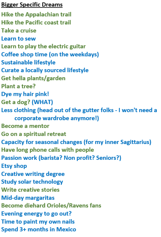 Ta-da!! It juiced my motivations just typing these all together! Hopefully, in the next 8 or so years, if my motivation ever wanes I will be able to come out to this post and re-invigorate. I am super excited to have the time and money to build the life that we have painted here.